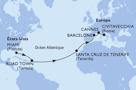 *Embarquement de Pointe-à-Pitre à bord de MSC Virtuosa : vol aller depuis Paris inclus et offert (valable pour les passagers 1 et 2 uniquement). Dans le cas des passagers 3 & 4 dans la cabine, un supplément vol aller de 520 € par personne est requis.